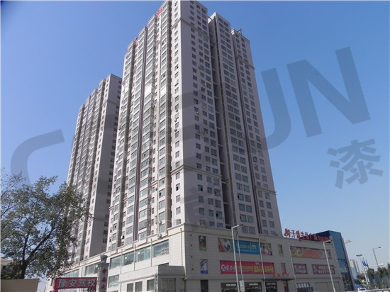 三、外墻真石漆施工要求同批料用在同面墻上,同時還建議同批施工人員進(jìn)行施工,施工時噴涂要求做到厚薄均勻一致,以防色差出現(xiàn)。